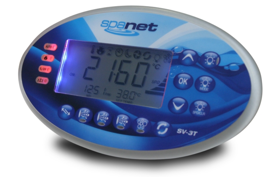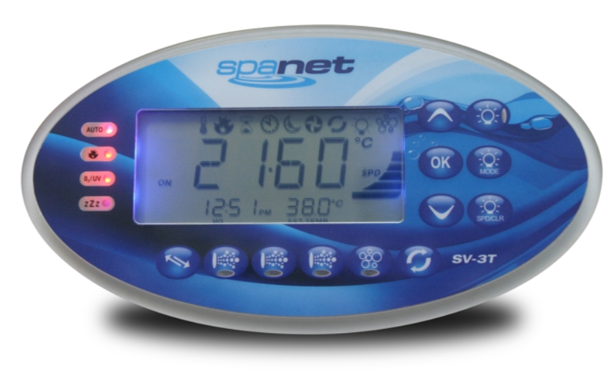Completely gel filled electronics and low-profile design for drop mount installation into spa shell.