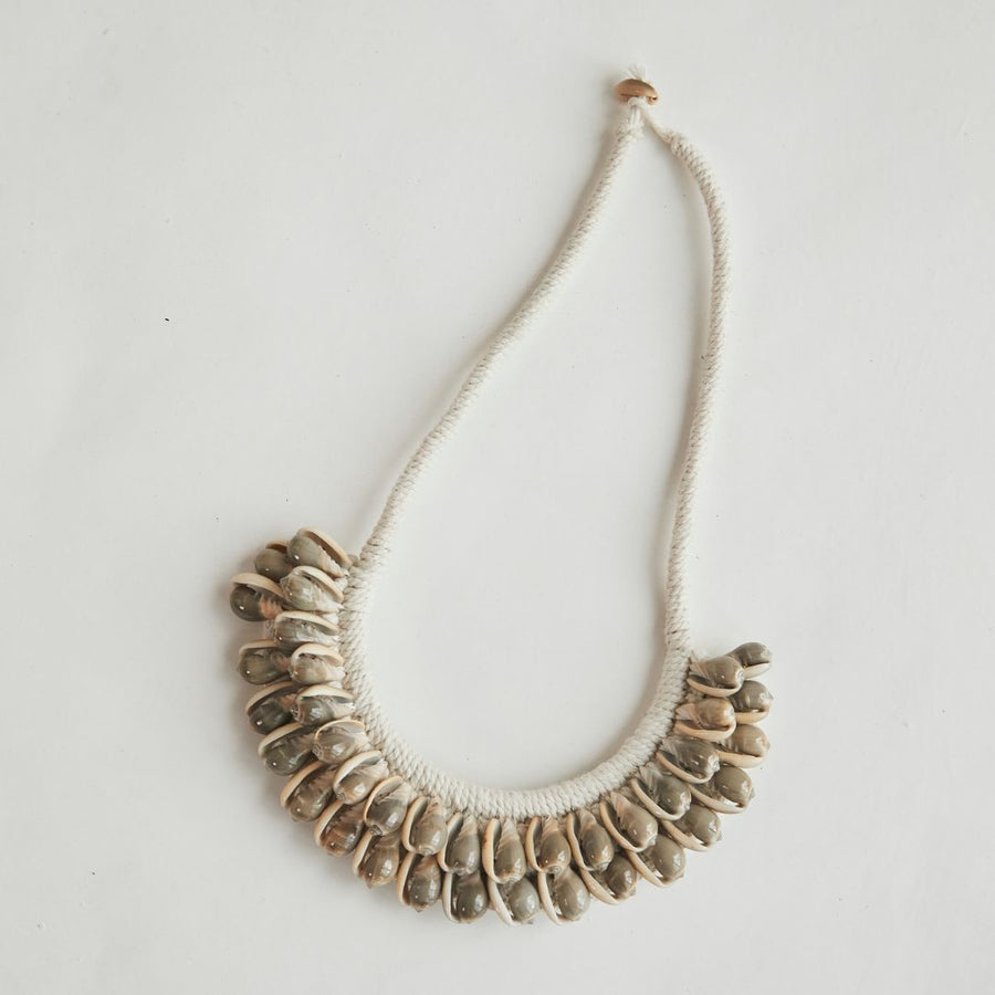 This beautiful handmade Cowrie Shell Necklace decorated with lovely cowrie shells on a macrame of cotton strings background is a gorgeous statement piece for your coastal abode. Hang it on a round wooden hook and add some raffia wall hangings or other boho coastal pieces. Or hang it over a big pot/vase or even use it as a curtain tie back, to add that coastal feel.