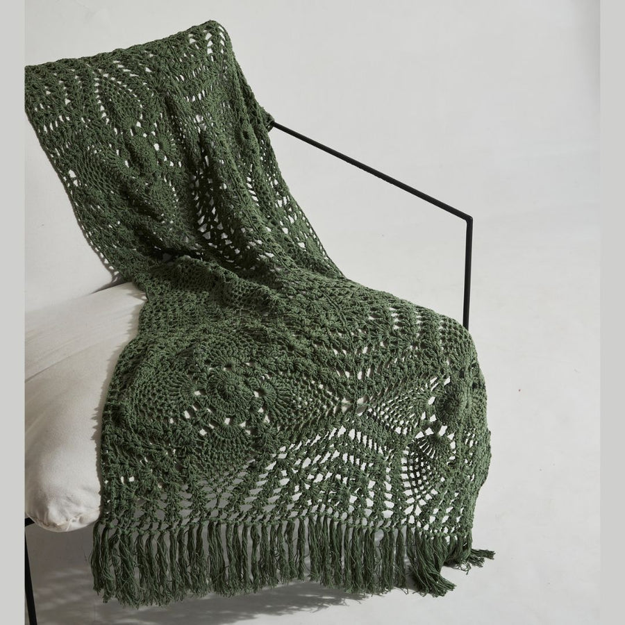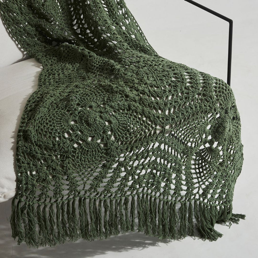 Introducing an exquisite handmade crochet throw, thoughtfully crafted with natural fibers, to enhance your home decor all year long. Elevate the charm of your bedroom, cherished chair, or living area with this essential throw, beautifully adorned with complementary tassels.