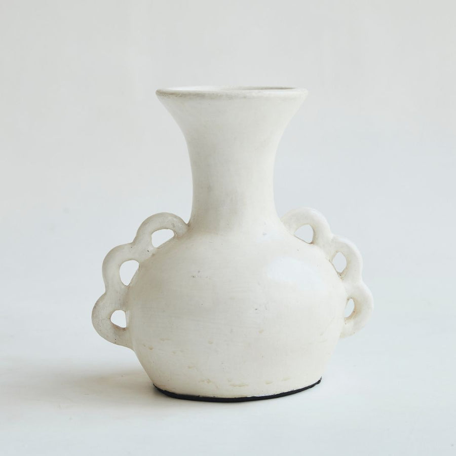 A beautiful narrow-neck vase with a frill on either side. This vase hits all the natural and organic style notes with us. This vase is perfect for little sprigs of flowers and will add a delightful touch to your bedside table, bathroom vanity, or a special spot in your home.