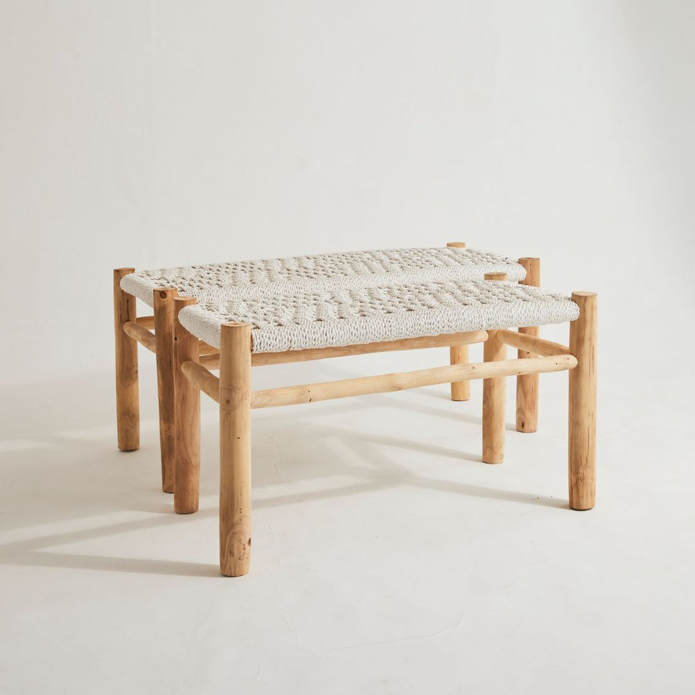 This beautiful bench has a stunning macrame seat and strong durable wooden legs making it the perfect piece of furniture for your natural home decor.