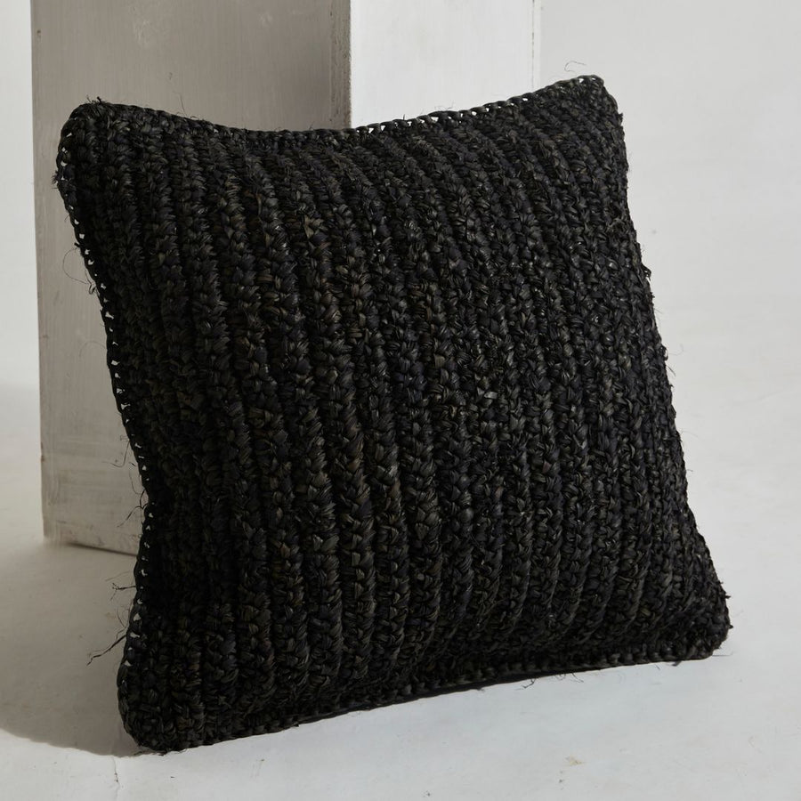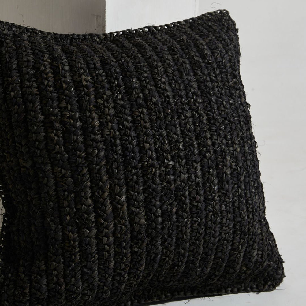 Enhance your interior decor with this stunning Raffia Cushion in Black, expertly handcrafted in Indonesia using intricate crochet technique.