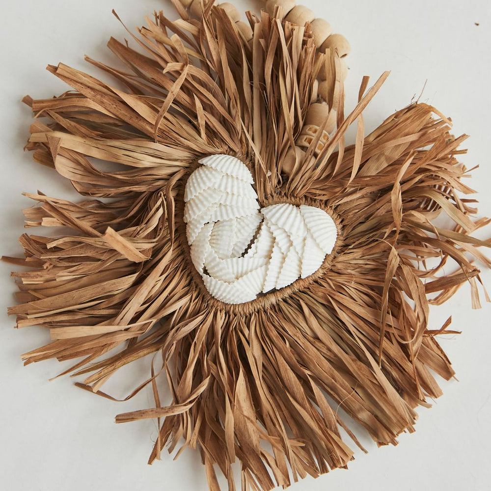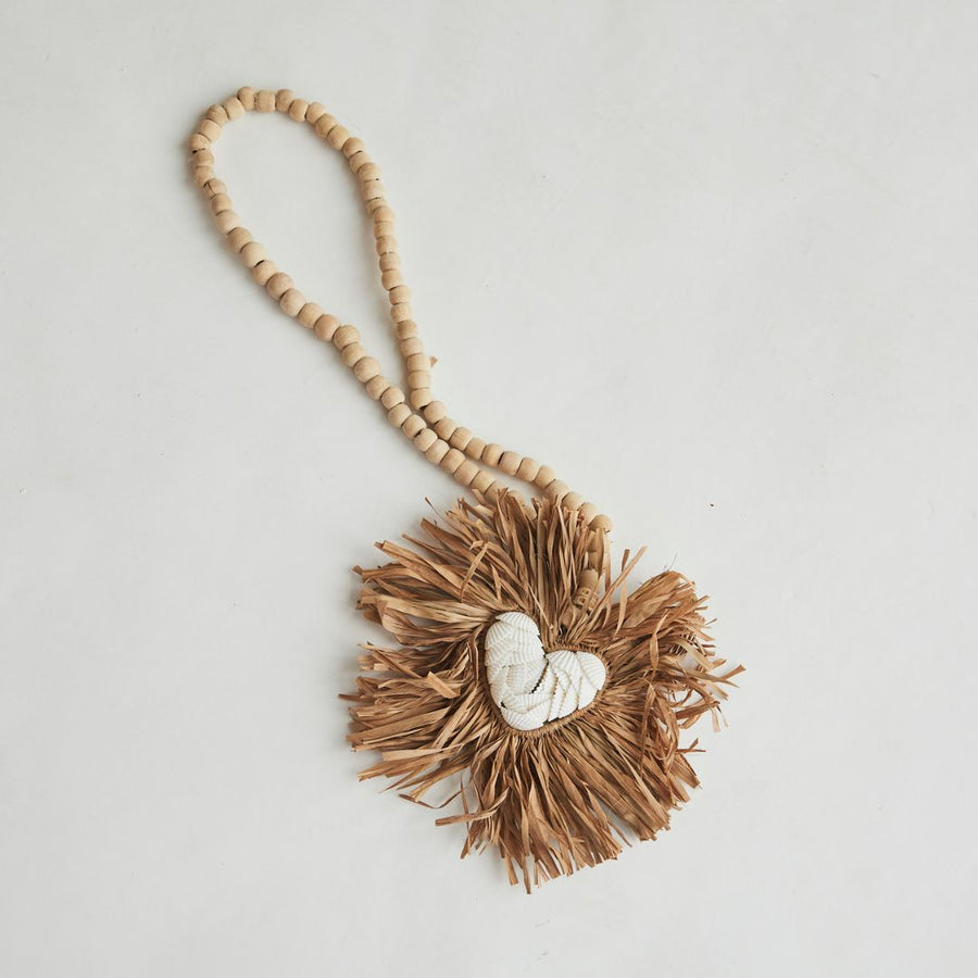 Bring a tropical, coastal touch to your home. This beautiful coastal decor piece blends into the modern home in many different aesthetics. The Seagrass and Shell Tassel with boho wooden beads is a stunner, hang it on the wall or wrap it around a vase or basket for that little bit extra.