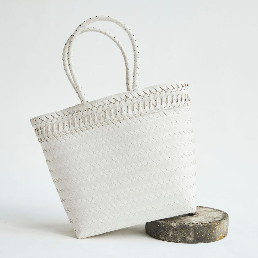 Elegant and unique hand-woven texture, simple but stylish, and it effortlessly matches everything in your wardrobe - this Woven Rattan Tote Bag in White is a must-have fashion accessory.